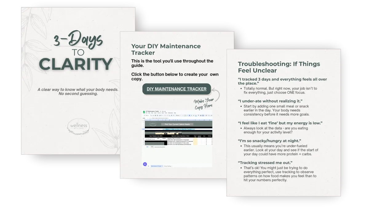 That's exactly why this exists. In just 3 days, you'll find your personal estimated maintenance calories and walk away with one simple next step that actually feels doable.